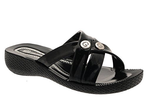 Buy Lora Dora Womens Strappy Low Wedge Comfort Sandals Ladies Summer Mules Shoes Black Size UK 6 at amazon